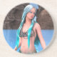 Representación digital en 3D de una hermosa sirena de fantasía en un fondo oceánico azul
