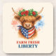 Posavasos Farm Fresh Liberty Highland Cow Patriotic USA Art