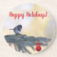 Posavasos "¡Felices fiestas!" Ave de nieve en un Evergreen e