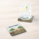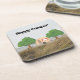 Feliz Camper con un camper en el bosque en un set de una montaña de bebidas.