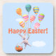 Bebidas con mi obra de arte de un lindo conejo sujetando un montón de globos a rayas que flotaban en el cielo mientras cargaban una cesta llena de huevos de Pascua. El texto del personalizable dice "¡Feliz Pascua!"
