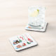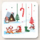 Festive Fun Santa Christmas Scene coaster featuring, Santa, reindeer, a snowman, and a cozy cabin with festive decorations and snowfall.