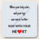 Has llegado a ese momento en que tus piernas están en agonía, tu cuerpo grita "¡Alto!" pero tu cerebro dice: "¡No! ¡La carrera todavía no ha terminado!" Ese es el momento de cavar profundo y resonar de tu corazón. El texto inspirador está en negro con un corazón rojo, y hay un fondo azul pálido con la silueta de un ocho remo.