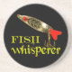Divertida montaña rusa para pescadores y pescadores. Pescado Whisperer en texto con un señuelo de pesca a todo color cerca de la parte superior.