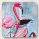 Hermosa acuarela colorida, de pintura original de Sacha Grossel de flamencos rosados y naranjas contra un fondo de agua azul cielo. Bonito flamingo.