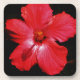 Posavasos Flor de Hibiscus rojo rosado caliente en negro