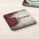 Personalice esta montaña rusa de plástico con su nombre en un tipo de letra Art Deco negro. Audaz y elegante. La superficie está diseñada con una fotografía de otoño con motivos florales. Papel de escritura florido con flores rojas bonitos y hojas verdes colocadas alrededor de los bordes.