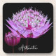 Conjunto de 6 tiras de bebidas de plástico duro con soporte de corcho que muestran la imagen de una flor Astrantia rosa contra un fondo negro y contrastante. También conocido como Masterwort y Hattie's Pincushion. ¡Un diseño impresionante y florido!