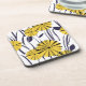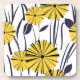 Ilustracion de estilo retro sin igual con flores amarillas y hojas azules sobre fondo blanco