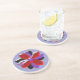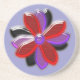 Esta montaña de piedra arenisca de bonito presenta una imagen digital de una flor de margarita con pétalos de color púrpura, rojo y negro con un centro púrpura. Los pétalos parecen hechos de plástico brillante que ha captado la luz y causado un efecto iridiscente. El fondo es de un color azul calmante.