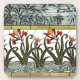 Una hermosa pieza de vidrio manchado, presenta flores que crecen de agua estilizada en el fondo y un resumen de hojas en la parte superior. Una hermosa compra que haría un regalo increíble!