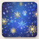 Posavasos Fondo azul XMAS con copos de nieve dorados