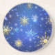 Posavasos Fondo azul XMAS con copos de nieve dorados