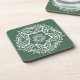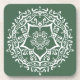 Esta mandala blanca se sienta sobre un fondo verde forestal. Los colores son tranquilos. Parte de la colección Jarn Mandala.