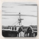 portarretratos foto blanco y negro de un barco pesquero con jaulas a langostas, título: “La puesta en agua”, Iles-de-la-Madeleine, Quebec, el Canadá. María-Eva LaBadie fotografió