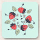 Montaña cutánea de fresas con un ilustracion vectorial que representa a 5 personajes de fresa sonrientes felices bailando en círculo rodeado de hojas y flores de su propia especie. Diseño divertido con espíritu primaveral para una persona que ama estos deliciosos frutos.