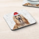 Fun coaster set for the person who loves their Afghan Hound. This one wears a Christmas Santa hat for a stylish approach to the holiday season, and sits cutely against a faded WOOF background to decorate your home or office with seasonal pet lover joy.