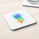 Grandes medusas de azulejo brillantes, de dibujos artísticos, con largos tentáculos en blanco, pintadas con fondo multicolor de acuarela. Mariscas arcoiris.