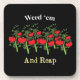 Los tomates son un alimento básico para la mayoría de los jardineros y ninguno de nosotros puede esperar esos jugosos frutos rojos. Diseño gráfico divertido con una hilera de plantas de tomate rodeadas por el juego de palabras Weed 'em And Reap.