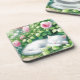 Posavasos Gatito blanco dulce tocando debajo de un Bush Rosa