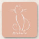 Posavasos Gato blanco minimalista al añadir nombre rosado