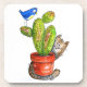 Este es un original cuadro de un medio mixto de un capo caprichoso escondido detrás de un cactus.