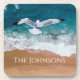 Una gaviota preciosa sobrevolando las olas del mar surcan en la orilla. Personalizar a su gusto.