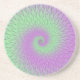 Haz una declaración audaz con este llamativo diseño de espiral geométrico. Con púas radiantes en capas que atraen la mirada hacia adentro, la obra de arte combina suaves gradientes de púrpura y verde menta sobre un dramático fondo negro. El resultado es un efecto fascinante, casi hipnótico, que se siente moderno y dinámico.