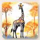 Admire un estilizado ilustracion de jirafa situado en un ambiente cálido y texturado de sabana africana con árboles de acacia. Perfecto para el arte de la vida silvestre (Este diseño hecho con IA). ¡Haga el pedido hoy y acepte la alegría de ir de compras!
