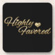 Un divertido y divertido diseño basado en texto con "Altamente Favorecido" en un guión dimensional dorado con un corazón dorado pequeño.