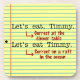 Esta hilarante montaña rusa para escritores, editores, bibliotecarios, profesores de inglés y snobs gramaticales ilustra la importancia de la puntuación. Cuando llamas a Timmy a cenar, necesitas una coma. Cuando estás tramando canibalizar a Timmy en una balsa, deja la coma atrás. Timmy estará agradecido en la situación #1 - y todos los demás en la balsa estarán agradecidos en la situación #2. Cualquiera sea la situación, serás un orgulloso miembro de la policía gramatical. El fondo parece papel amarillo.