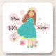 Un chica de cabello marrón con un vestido azul bonito y una corona de princesa con un fondo de flores rosadas en camisetas nuevas de la hermana mayor, botones, bolsos de té, cadenas de llaves, tarjetas, periódicos, almohadas, etiquetas de equipaje, relojes de pared y otros artículos que a la nueva hermana mayor le encantará poseer.