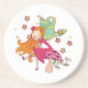 Una hada bonita del jardín con el pelo anaranjado que fluye y un vestido rosado se sienta en una seta rodeada por las estrellas de oro en las camisetas de hadas del jardín, baberos, mantas, tarjetas, bolsos, tazas, pegatinas, recuerdos, almohadas, relojes de pared, y mucho más.