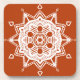 Esta mandala blanca se sienta sobre un fondo de henna naranja. El color es oscuro y natural. Parte de la colección de Mandala de Fenten.