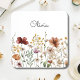 Presentamos nuestro posavasos para bebidas Hermoso jardín de flores silvestres con acuarela floral. Con ilustración de acuarela de flores silvestres de campo y texto que se puede personalizar en elegante estilo boho. Adecuado como regalo para amantes de la naturaleza.