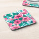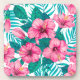 Diseño de patrones acuáticos con flores de hibisco y hojas de palma