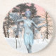 Representación digital en 3D de un hermoso hada de hielo en un fondo de bosque invernal