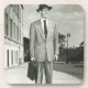 Hombre en el juego lleno que se coloca en la acera, (B&W), (retrato) marcas del | George el | AssetID: 57417083