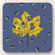 Hoja amarilla con agujeros y un patrón de ojos espeluznantes detrás de ella mirando a través de los agujeros sobre fondo azul oscuro. Extraño diseño de montaña de brujas con un ambiente oscuro, espeluznante y gótico para un amante de la naturaleza al que le gusta el arte raro y macabro con colores divertidos.