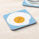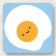 Atracción de un huevo frito feliz lindo en un fondo azul.