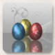 Un elegante ilustracion glamuroso de Pascua: Huevos de Pascua de estilo metálico con remolinos de plata sobre un elegante fondo blanco-gris.