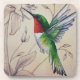 "Hummingbird No. 6" Watercolour Art Coasters por el artista Jean Weiner "Vintage Hummingbird No. 6" presenta un colibrí macho de rubí de colores vivos, verde y rojo. Este colibrí está cerniéndose cerca de una flor de columna en plena floración. Los ricos verdes del colibrí destacan sobre el fondo cálido y neutral. La insinuación de flor de fondo y follaje en tonos grises añade un toque antiguo a este diseño. ¡Seguro que alegrarás el día de los amantes de la naturaleza! Este producto fue diseñado usando la pintura acuarela original del artista Jean Weiner, "Colibrí de la Vintage No. 6". Todos los derechos de reproducción están reservados.