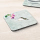 Los colibríes gavilleros de ruby se reúnen a lo largo de la costa del Golfo durante los meses de agosto y septiembre, preparándose para su migración anual a su casa de invierno en México. Mientras preparan flores llenas de néctar de plantas como la fusquia y la vid de trompeta para alimentarlas en su viaje. Este diseño presenta una garganta hembra que se acerca a una tentadora flor de fuschia rosa y púrpura.