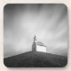 Práctico de costa plástico con una foto de una pequeña iglesia o capilla en una colina debajo de las nubes movimiento-borrosas en el cielo en blanco y negro creando una imagen conceptual muy fuerte de la fe en malas épocas.
