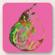 Ilustracion de arte original de una fruta de pera de la artista Sacha Grossel con arte pop de estilo moderno con un fondo rosa brillante. Esta pintura original en pluma y acuarela está disponible aquí para las impresiones de arte. Luminoso y colorido con un tema de frutas y verduras. Color de fondo personalizable.