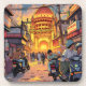 Personalizado ai ilustracion del centro de la ciudad de Kolkata, la capital y ciudad más grande del estado indio de Bengala Occidental. Una montaña rusa saludando desde India con un ilustracion de transitada calle del centro con edificios, restaurantes, tiendas y gente en sus motos.