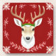 Posavasos Ilustracion de renos festivos con fondo rojo