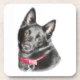 Monstruo de corcho con foto de perro del Mascota Schipperke. Conocido como "pequeño capitán" o "pequeño capitán", un perro muy activo, ama involucrarse y jugar. Curioso y atento, no puedes evitar enamorarte de este "pequeño demonio negro".