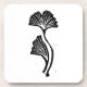 Impresión de linóleo minimalista de una hoja de gingko vertical en blanco y negro.