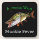 Pocas cosas se comparan con atrapar un lucio poderoso, tososo y muscular. Imagen detallada a todo color de un moskie monstruo con el texto Infectado con Fiebre Muskie.